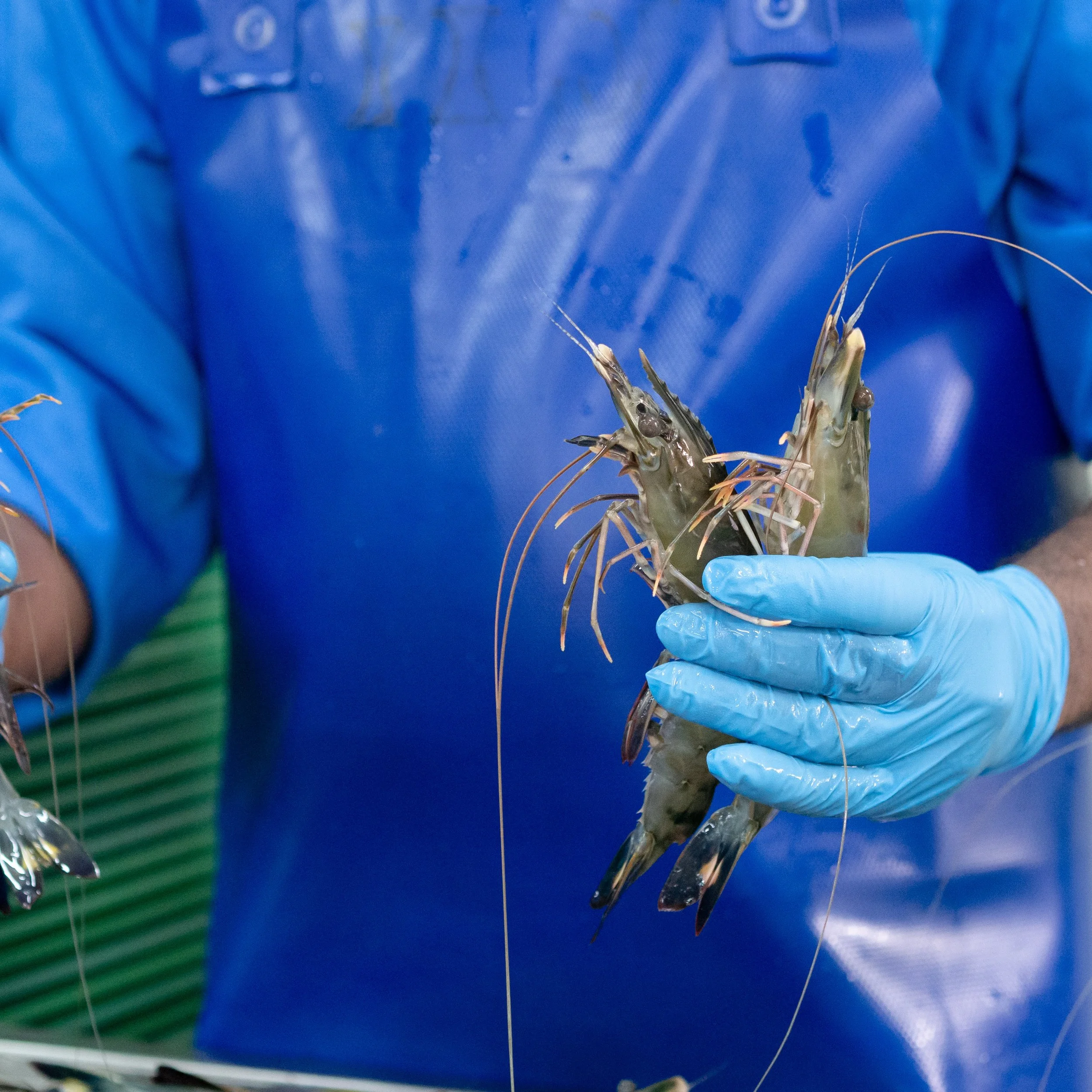 Our process begins with the arrival of live or chilled black tiger prawns. Live prawns are promptly transferred to holding tanks and humanely euthanised using a thermal shock method. A meticulous quality control process then follows, including visual inspection and organoleptic tests conducted by trained professionals. These assessments evaluate colour, odour, firmness, and signs of defects or disease, ensuring that only the highest-quality prawns proceed to the next stage.